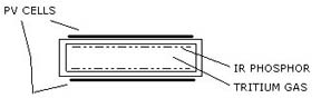 infrared light emitting phosphor inside a plastic vial containing the tritium gas.
